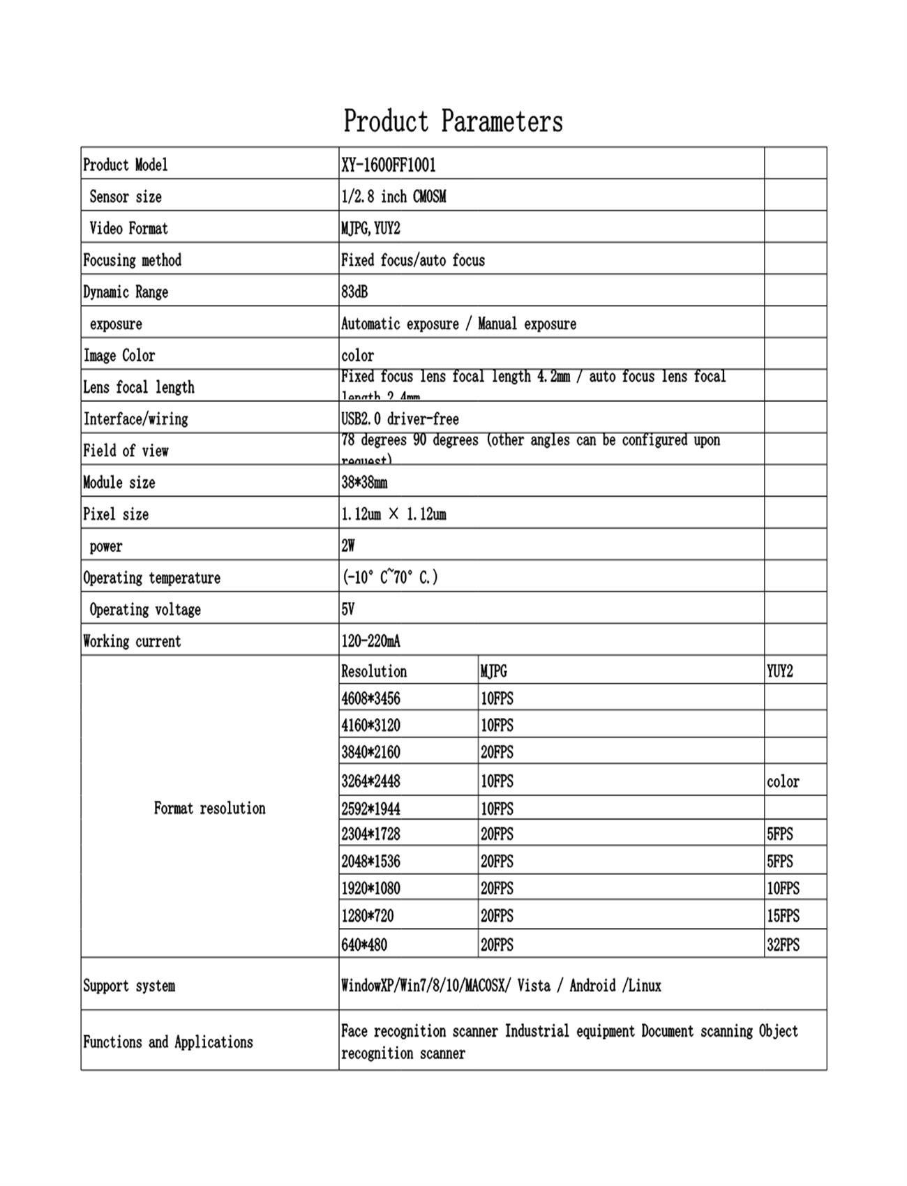 * Support video acquisition and recording, video conferencing, face recognition, infrared night vision,