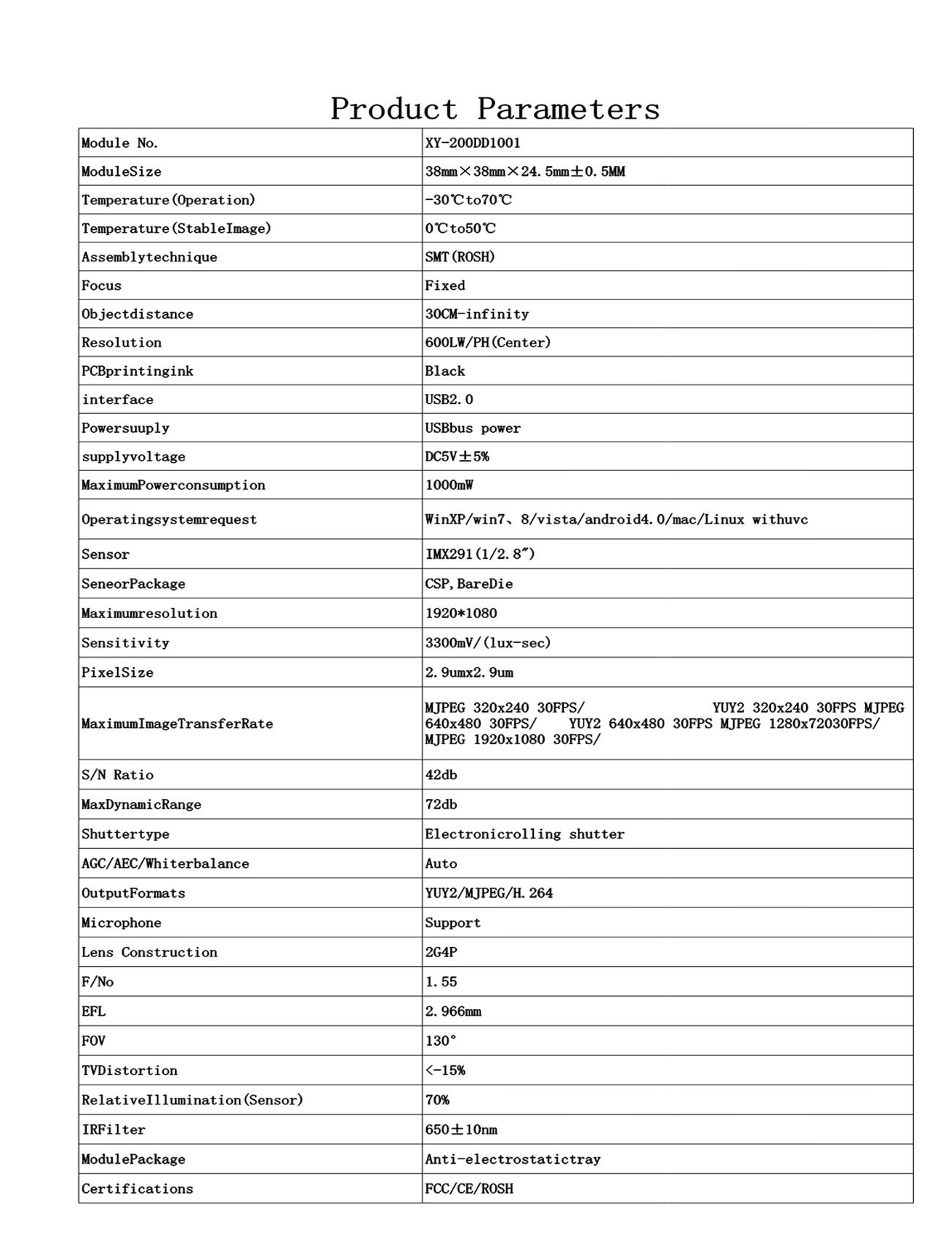 * Support color or black and white, MJPEG compression, H264 compression,