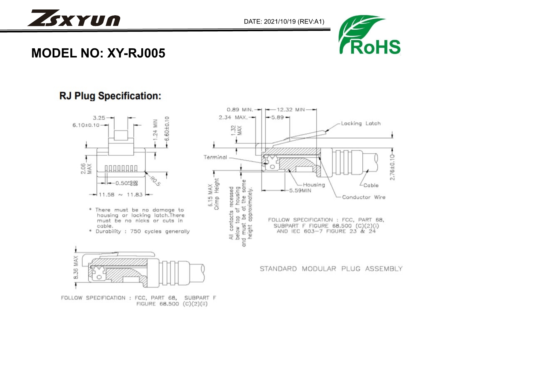 The crystal head is composed of a plug (connector, crystal head) and a socket (module).